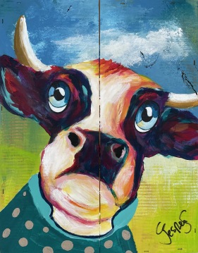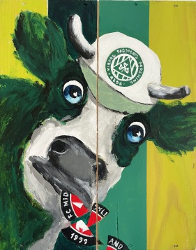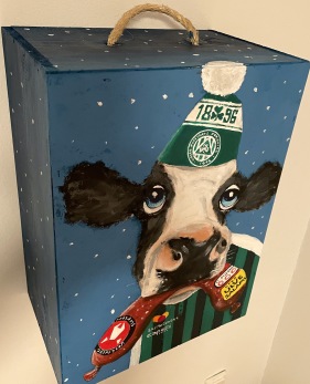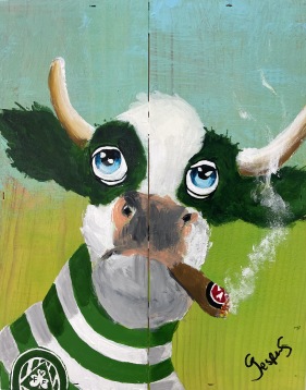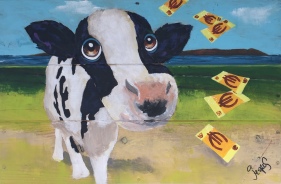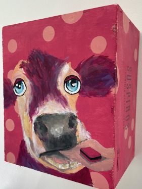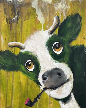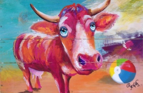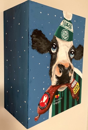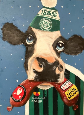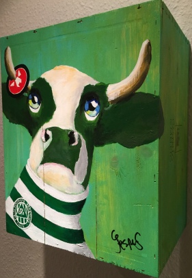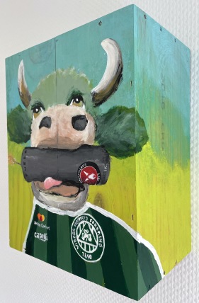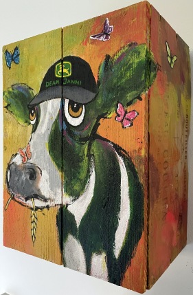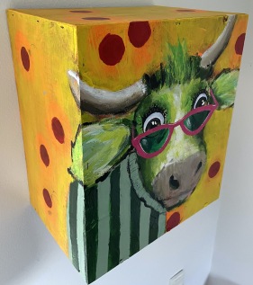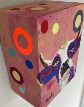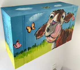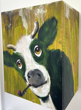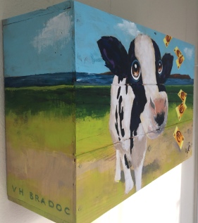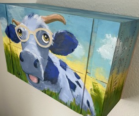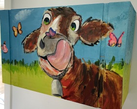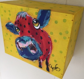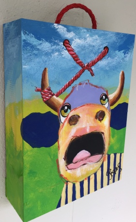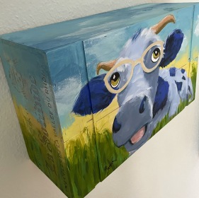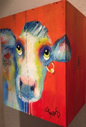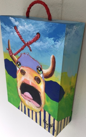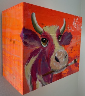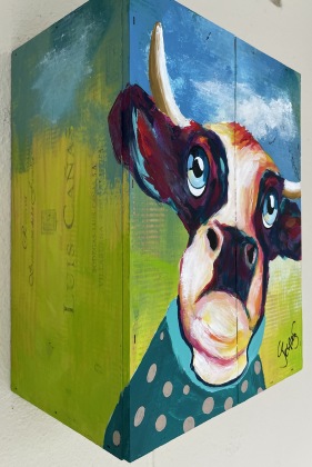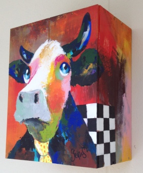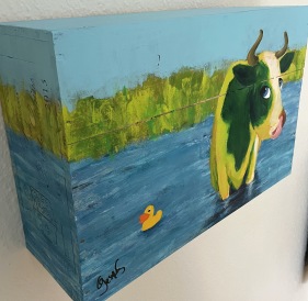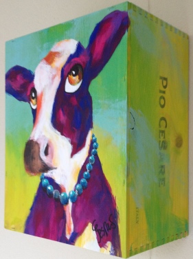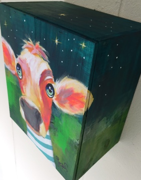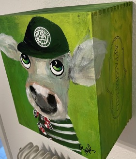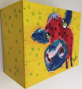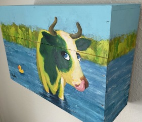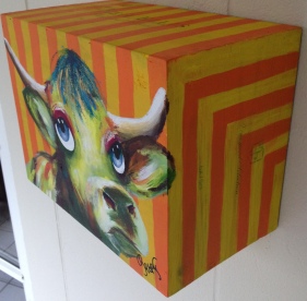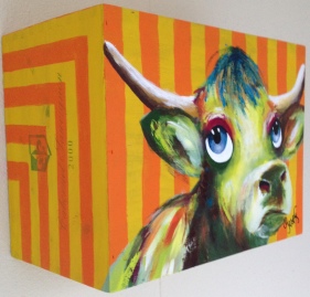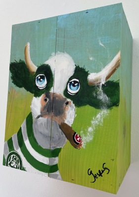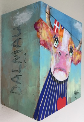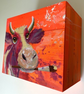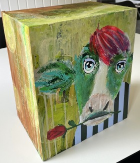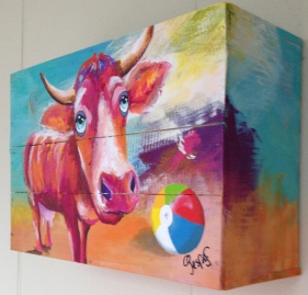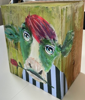 "Kokasser" er malet på træ-vinkasser, hvor jeg har bevaret tryk og præg osv. fra de originale kasser, men delvist malet over. Det giver en spændende effekt på væggen, at der er meget mere "dybde på maleriet". Nedenfor ser man hver kasse fotograferet fra begge sider samt fronten alene. Prisen er kr. 1.200,- pr. stk. Jeg maler også kokasser på bestilling, hvis du har et tema (kasserne 26, 27, 28 og 29 er lavet på den måde).