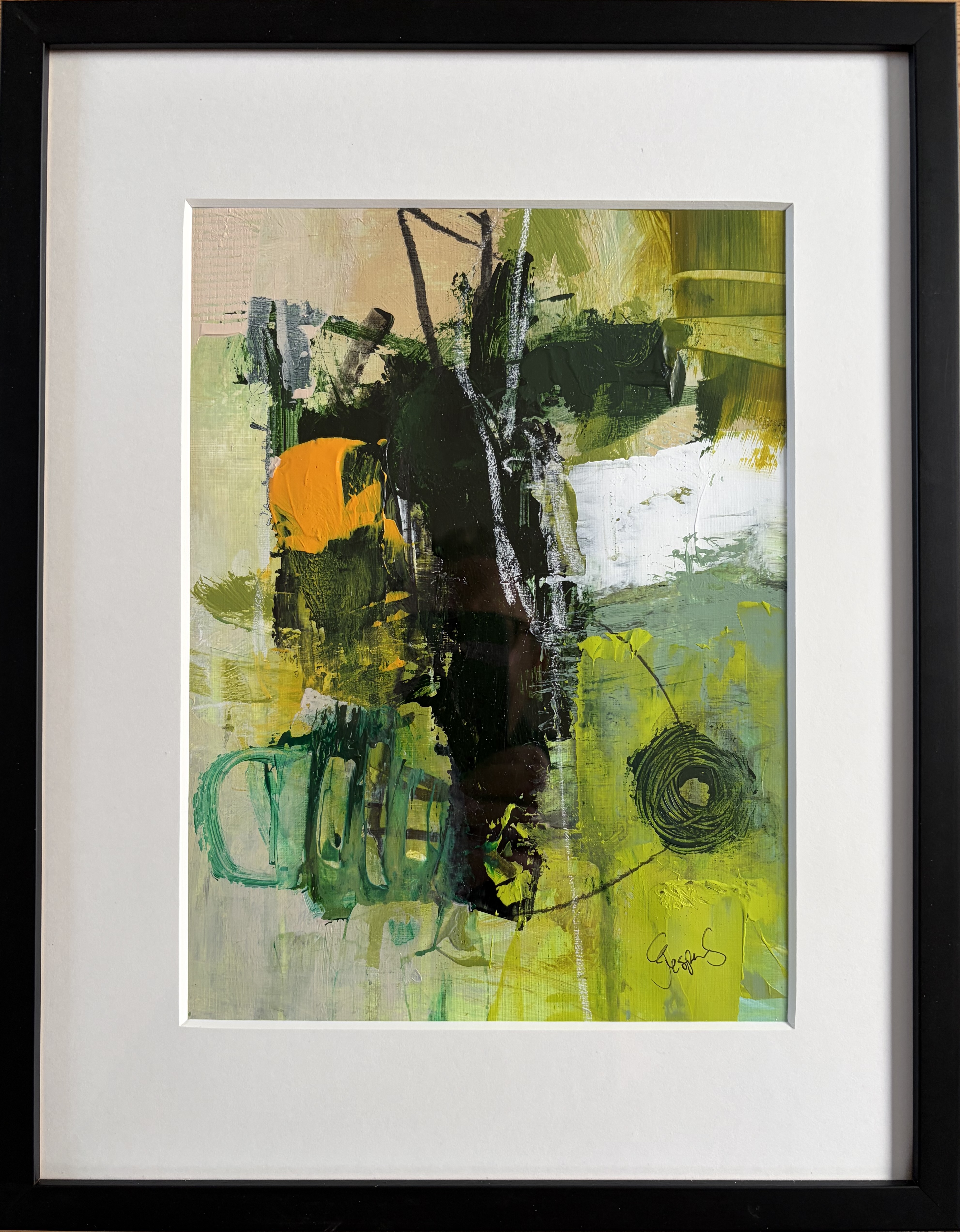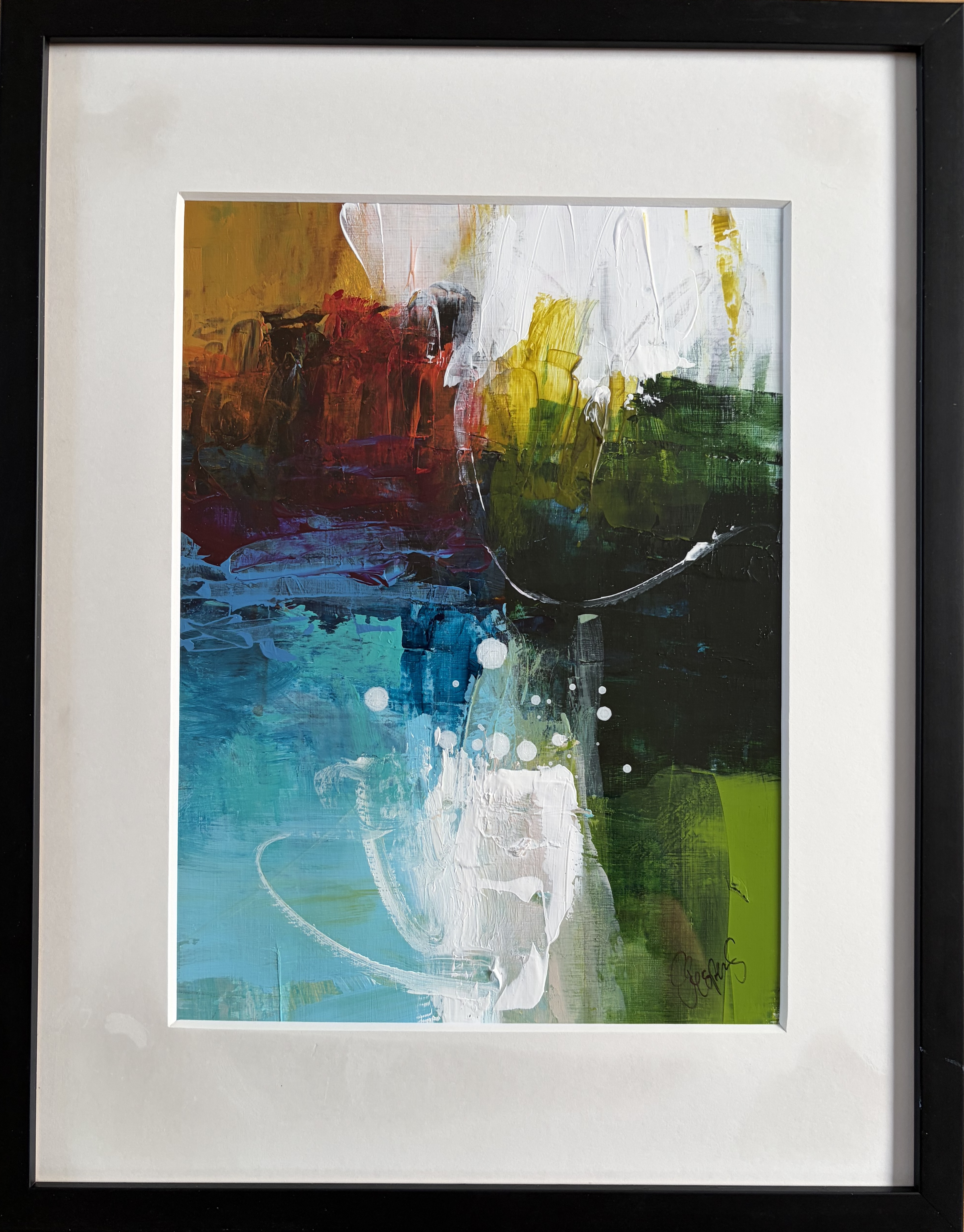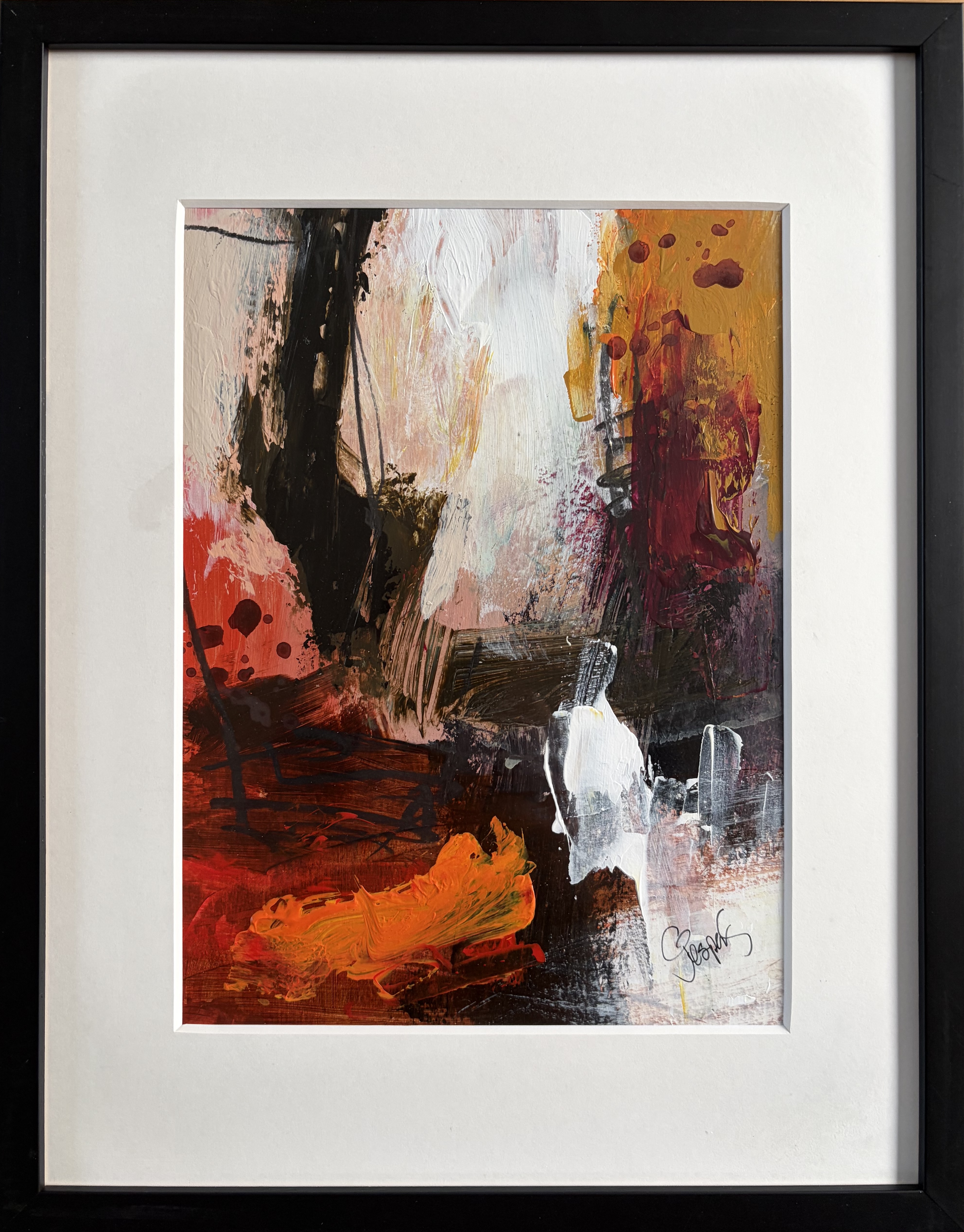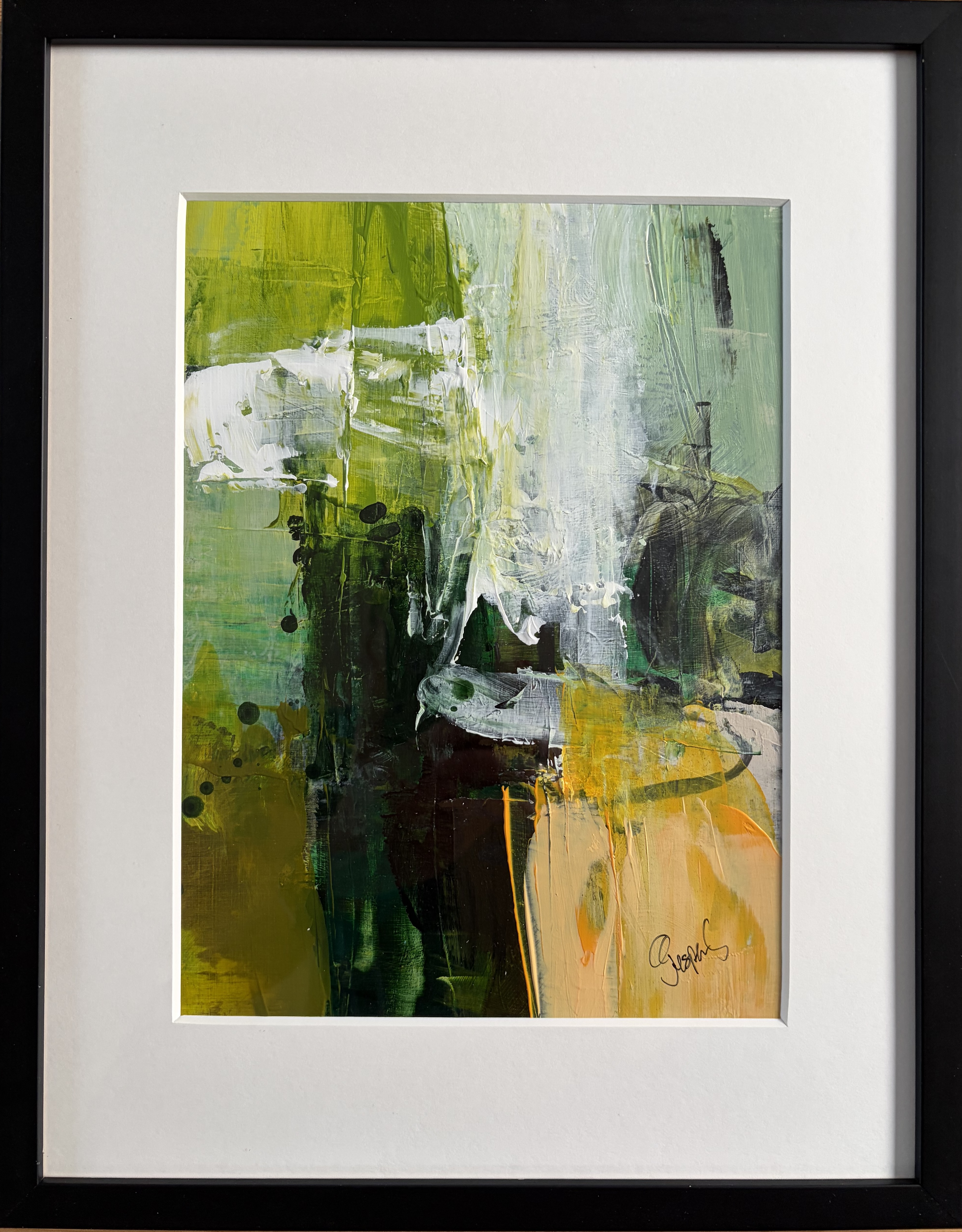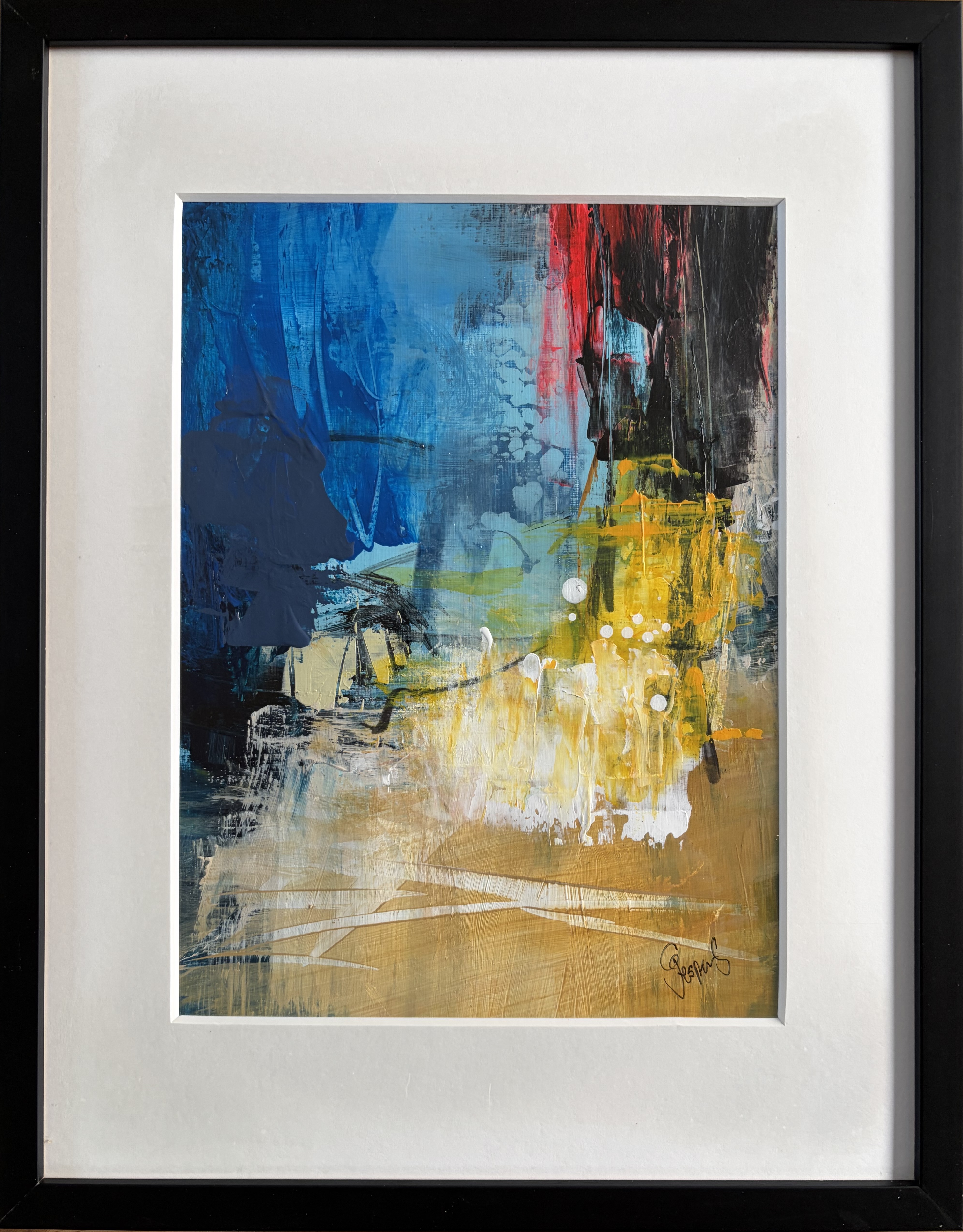 Original malet på papir - med passepartout og sort ramme (32,5 x 41 cm) - kr. 1.650,-